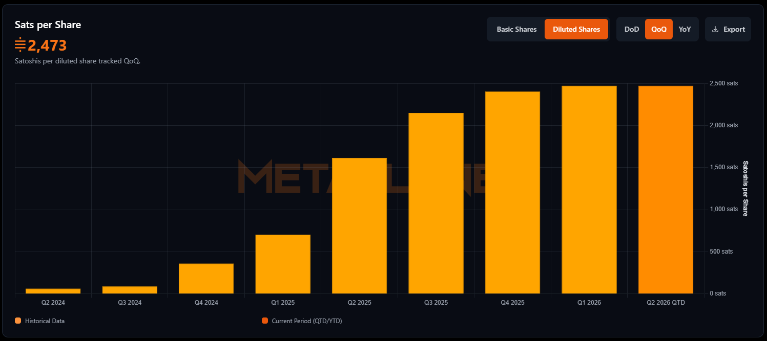 In simple terms, Bitcoin per share measures how much Bitcoin equivalent each shareholder effectively owns or has exposure to.